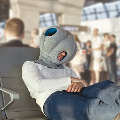 Hi. Flipping through the detritus of the day's mail while Vi is doing her homework, I just spotted this item for sale in Hammacher Schlemmer. According to the copy, it "blocks out noise and light to create a private zone for catching a quick power nap...at a crowded airport or recharging between meetings at work." !!!!!! It costs $99.95.